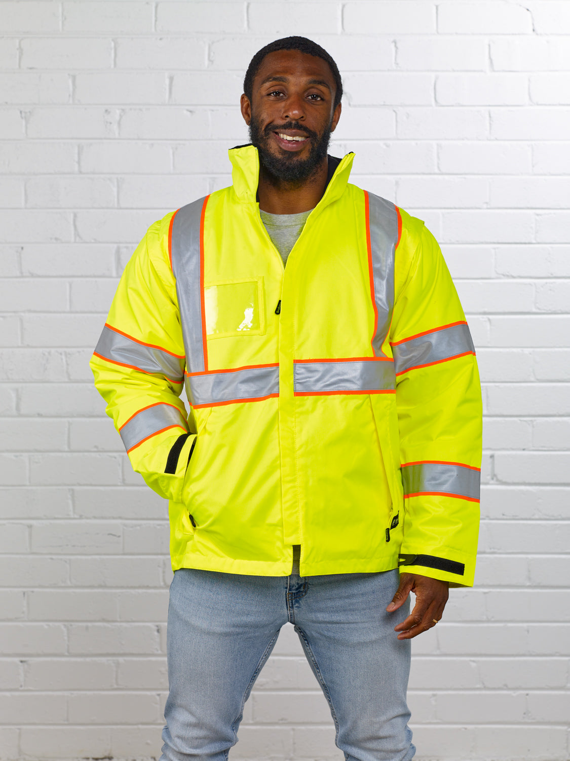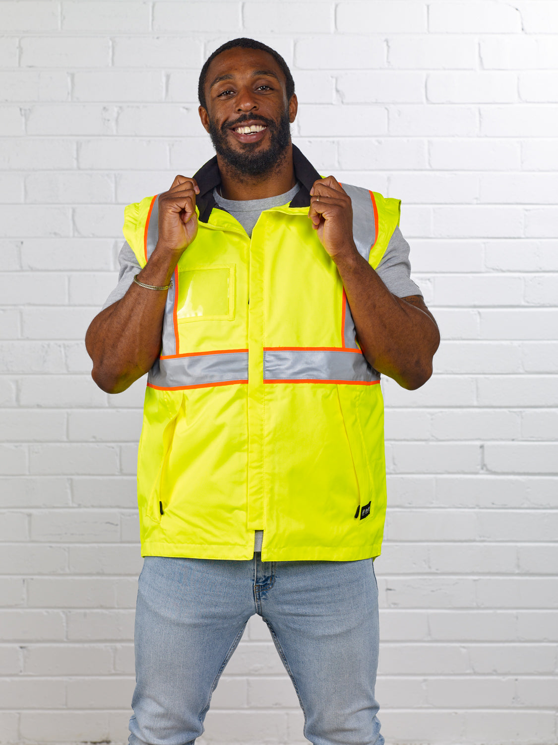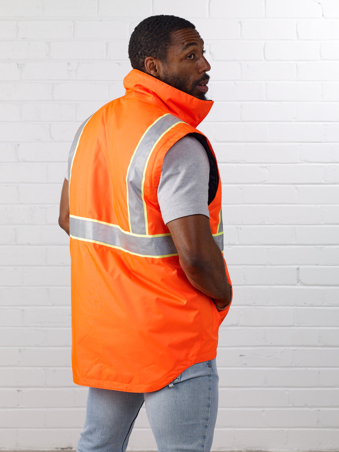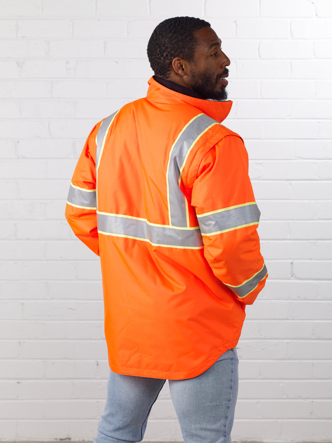 - Zip off sleeves creates a padded high visibility day/night safety vest