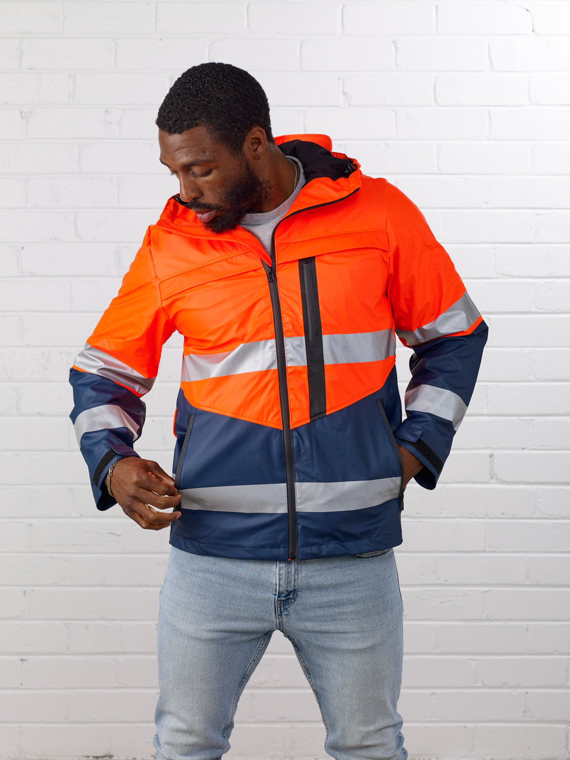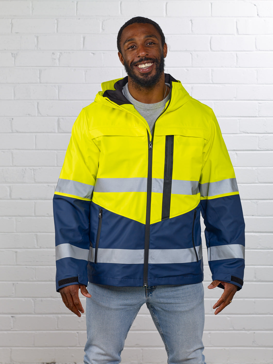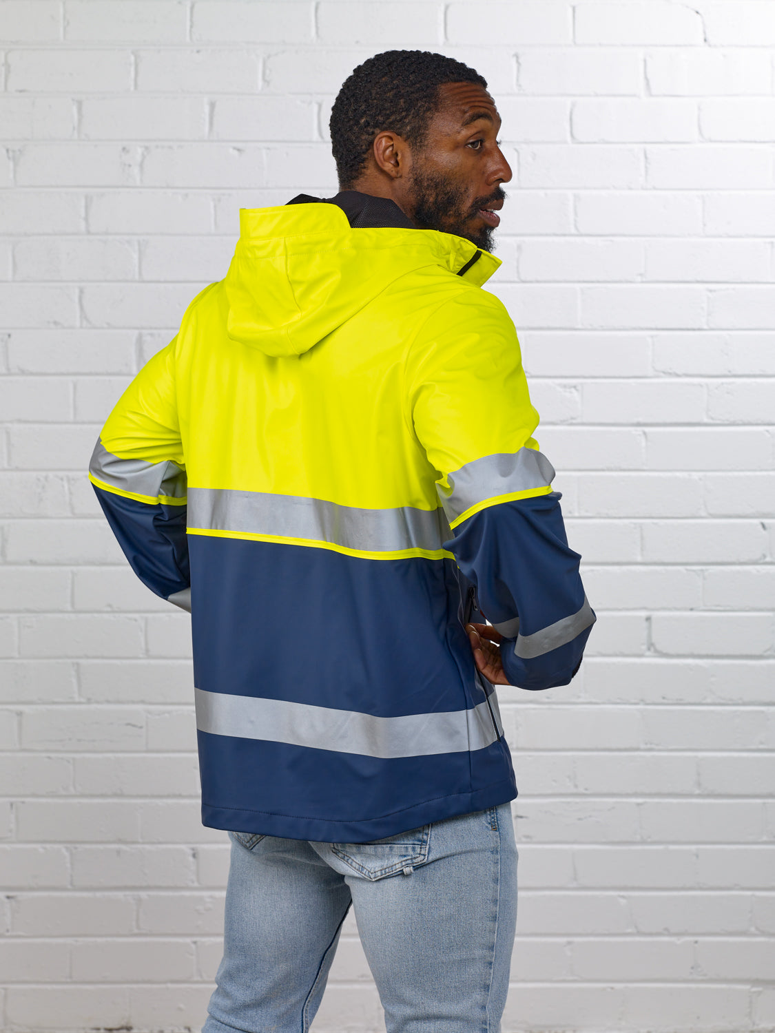The Brahma Hurricane Rain Jacket combines super soft PU material with high visibility safety features to keep you protected in the harshest weather conditions. Designed for tradies and building site workers, this rain jacket ensures you stay visible and dry, even during heavy rain and low-light environments. Lightweight, durable 100% waterproof and compliant with safety standards, the Hurricane jacket is the ultimate waterproof workwear for tough job sites.