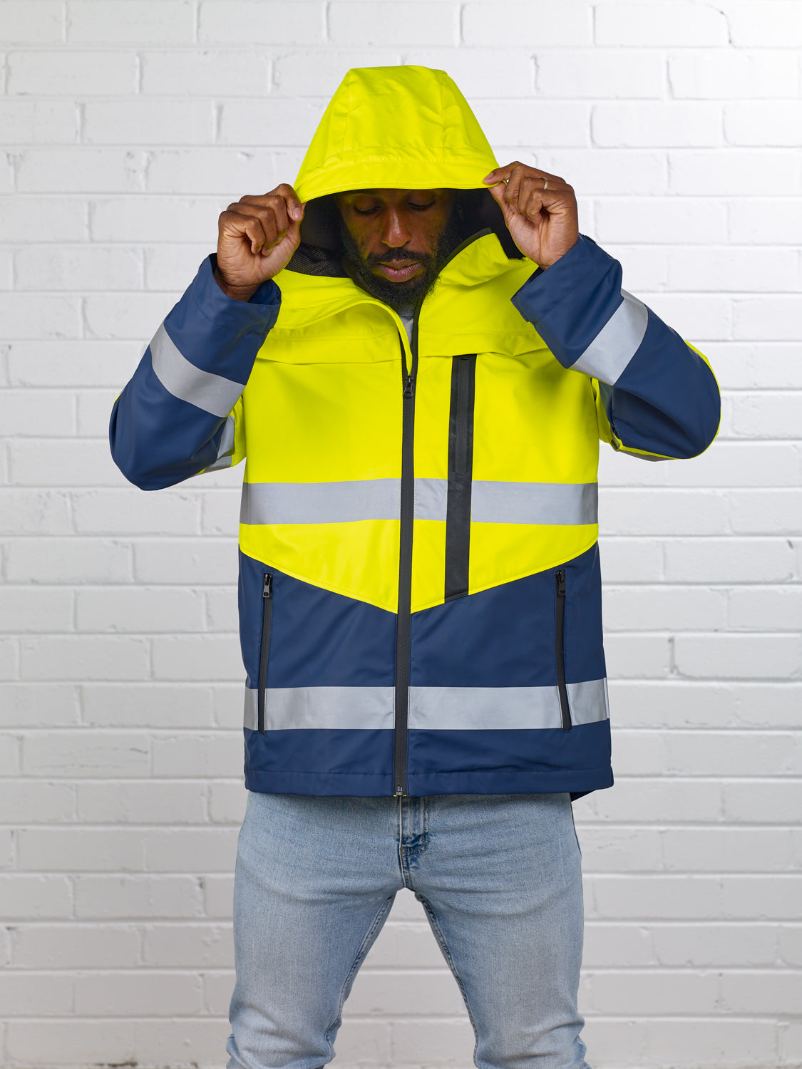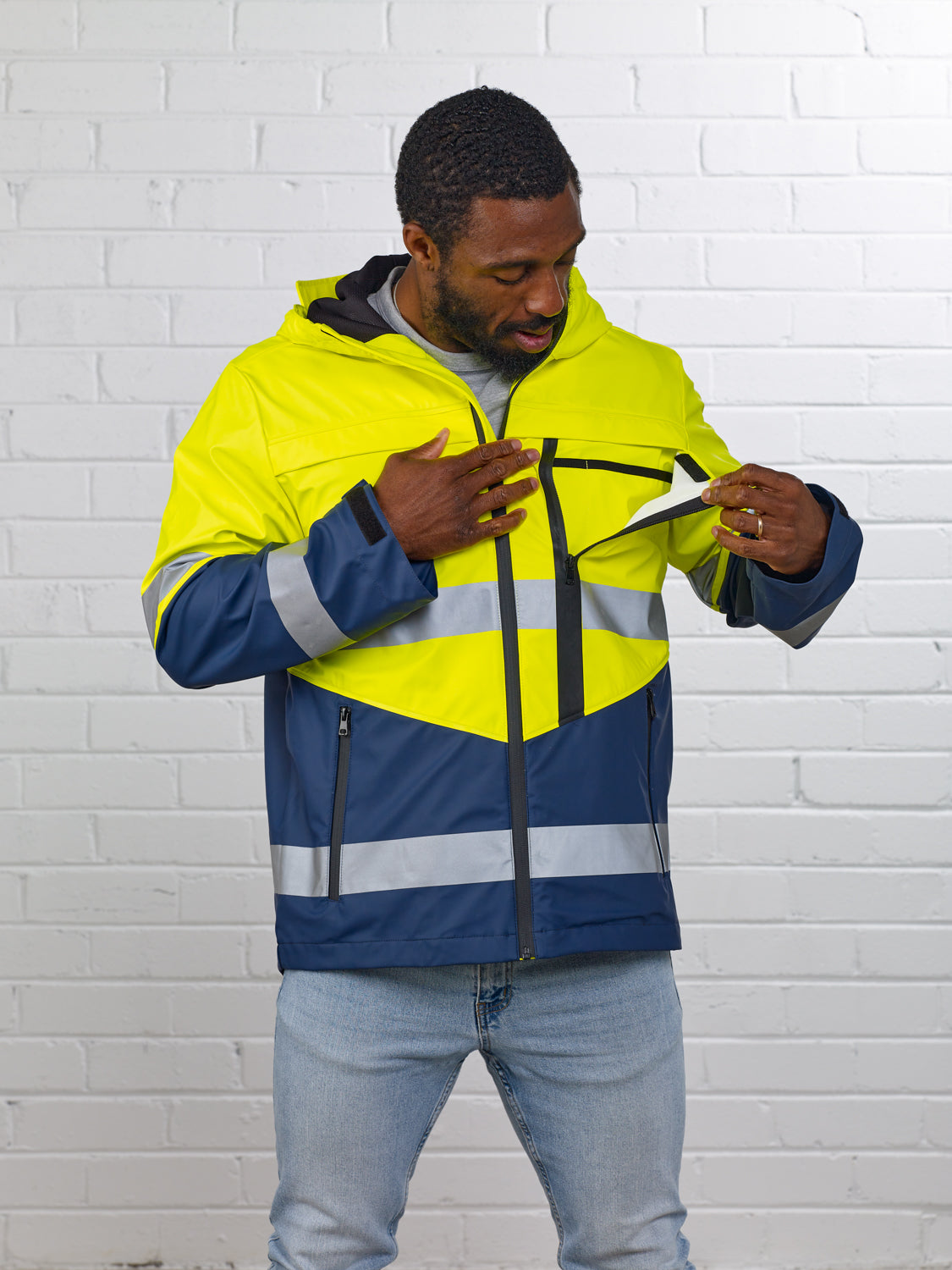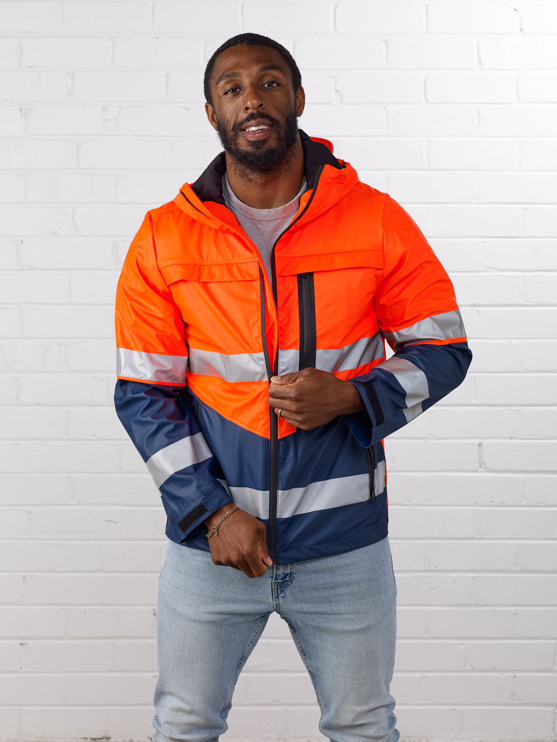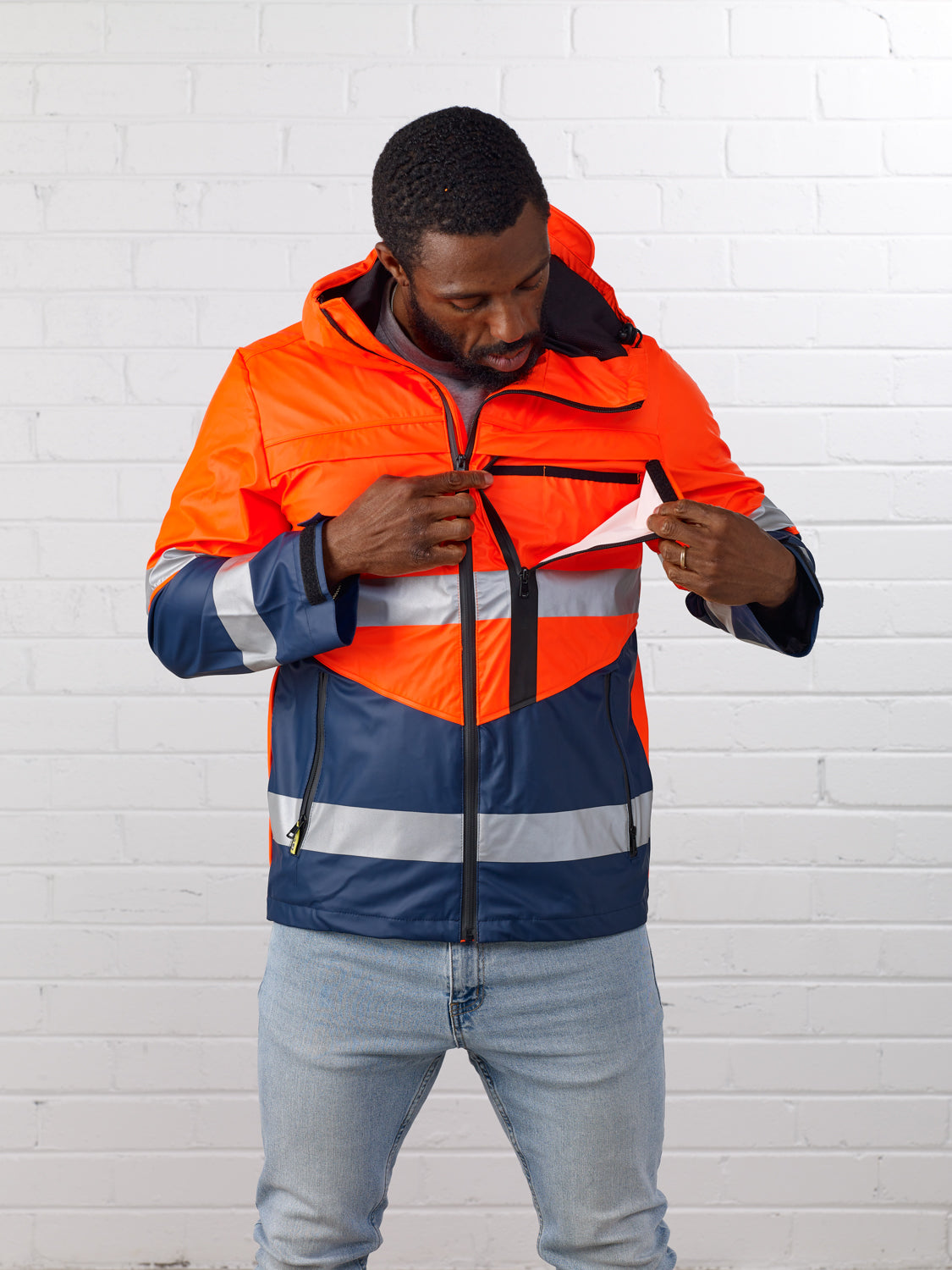 The Brahma Hurricane Rain Jacket combines super soft PU material with high visibility safety features to keep you protected in the harshest weather conditions. Designed for tradies and building site workers, this rain jacket ensures you stay visible and dry, even during heavy rain and low-light environments. Lightweight, durable 100% waterproof and compliant with safety standards, the Hurricane jacket is the ultimate waterproof workwear for tough job sites.