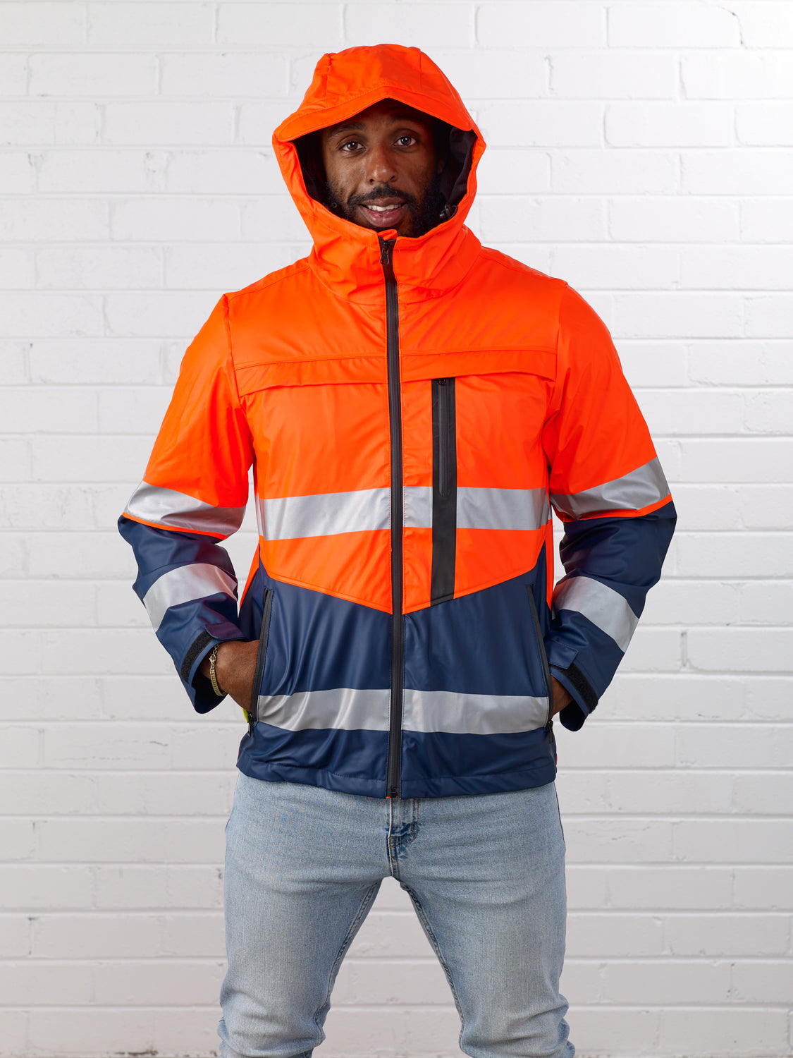 - Super soft top coat PU high visibility day/night waterproof jacket