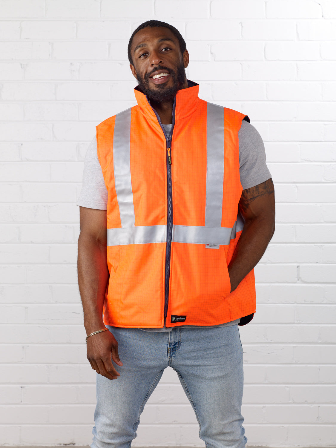 The Brahma High Visibility Platinum Vest is crafted from premium flame retardant and anti-static materials, providing essential protection on the worksite. Designed to meet strict Australian Standards AS/NZS 4602.1:2011 and AS/NZS 1906.4:2010 for Day/Night visibility, this vest ensures you stay safe and compliant in hazardous environments. Beyond safety, it offers added warmth to keep your chest comfortable during cold work conditions. Ideal for tradies, electricians, rig and specialist site workers who require reliable, high-performance safety gear.