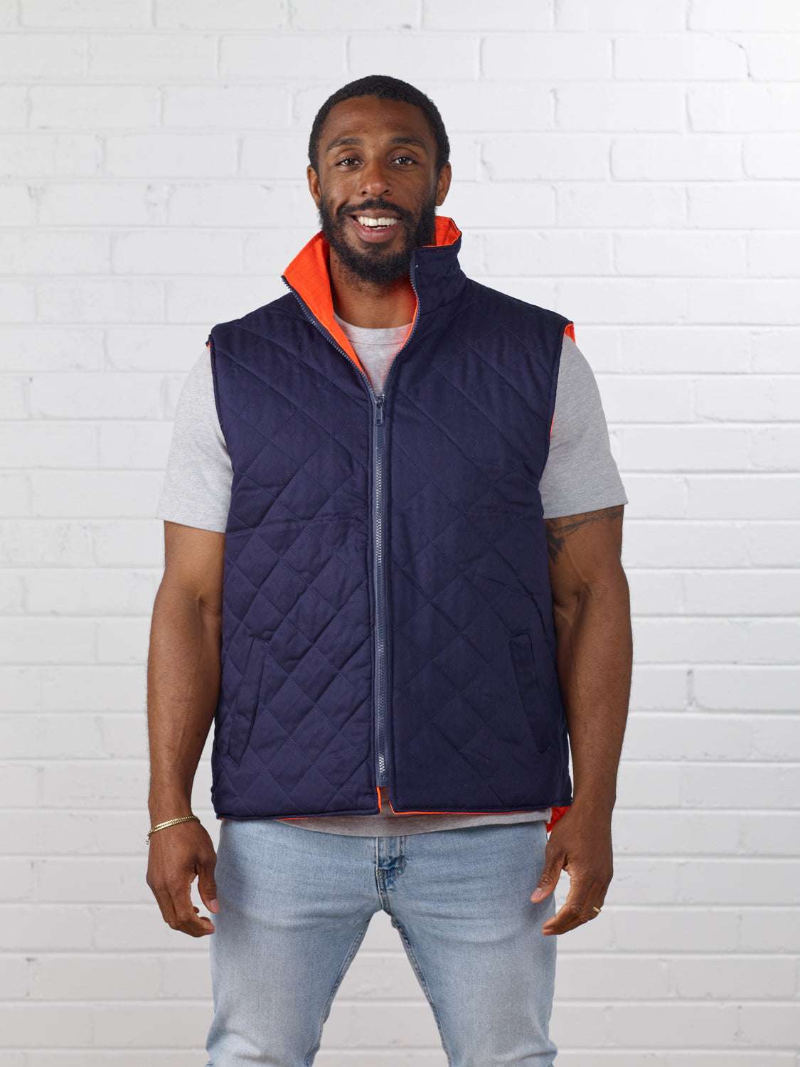 - Side two: Fleece vest with two slant pockets