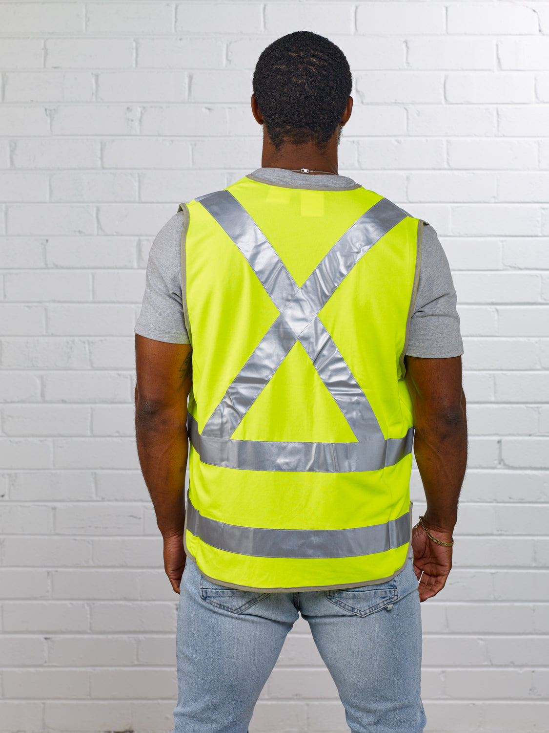Stay safe and seen with this High Visibility Day/Night Safety Vest featuring a bold reflective X-pattern on the back for increased visibility and compliance on busy worksites. Ideal for tradies, construction crews, and road workers, this vest meets AS/NZS 4602.1:2011 and AS/NZS 1906.4:2010 standards, ensuring reliable Day/Night visibility. Lightweight, durable, and easy to wear over any workwear, it’s the go-to choice for workers needing trusted safety on the job.