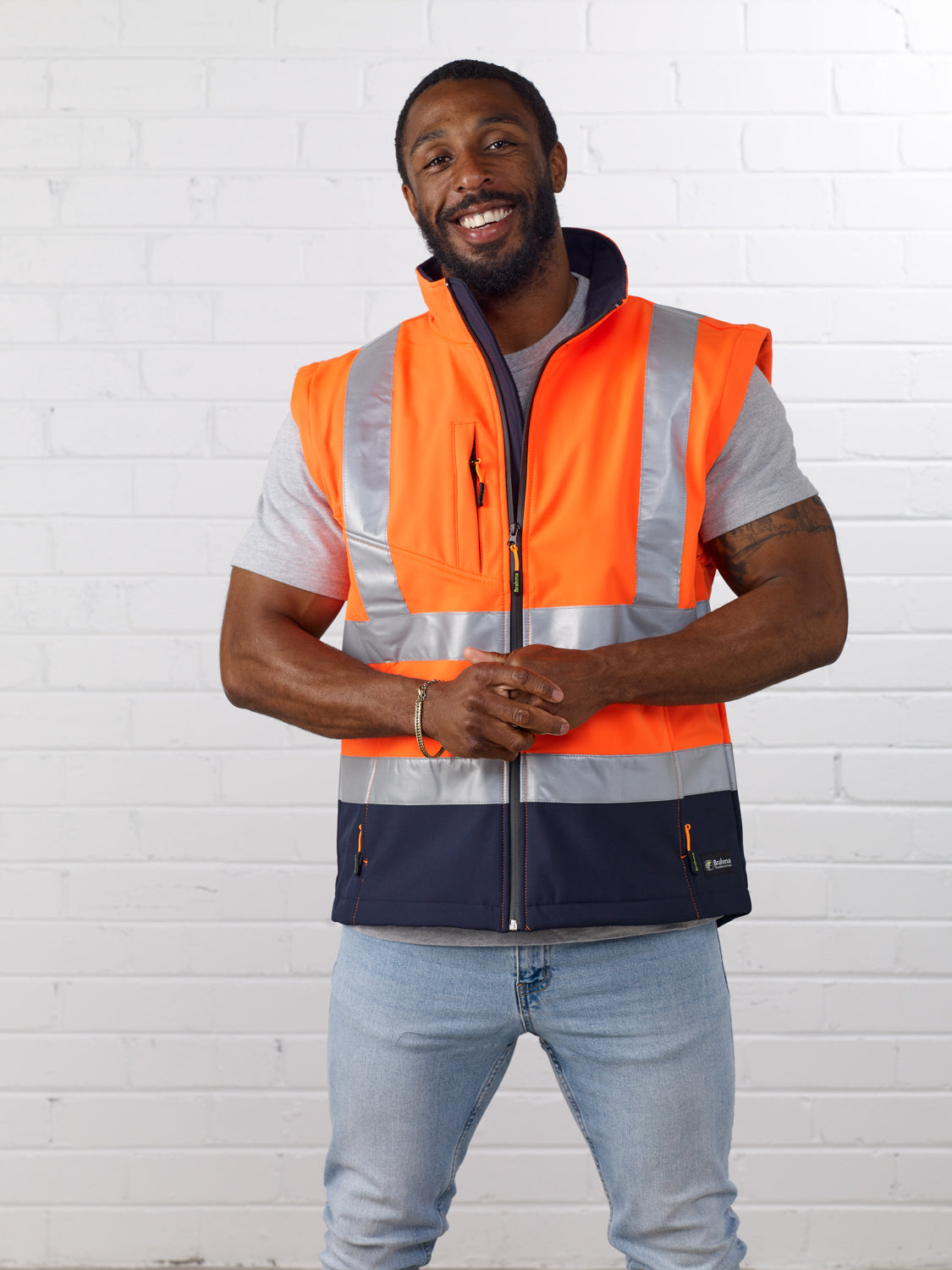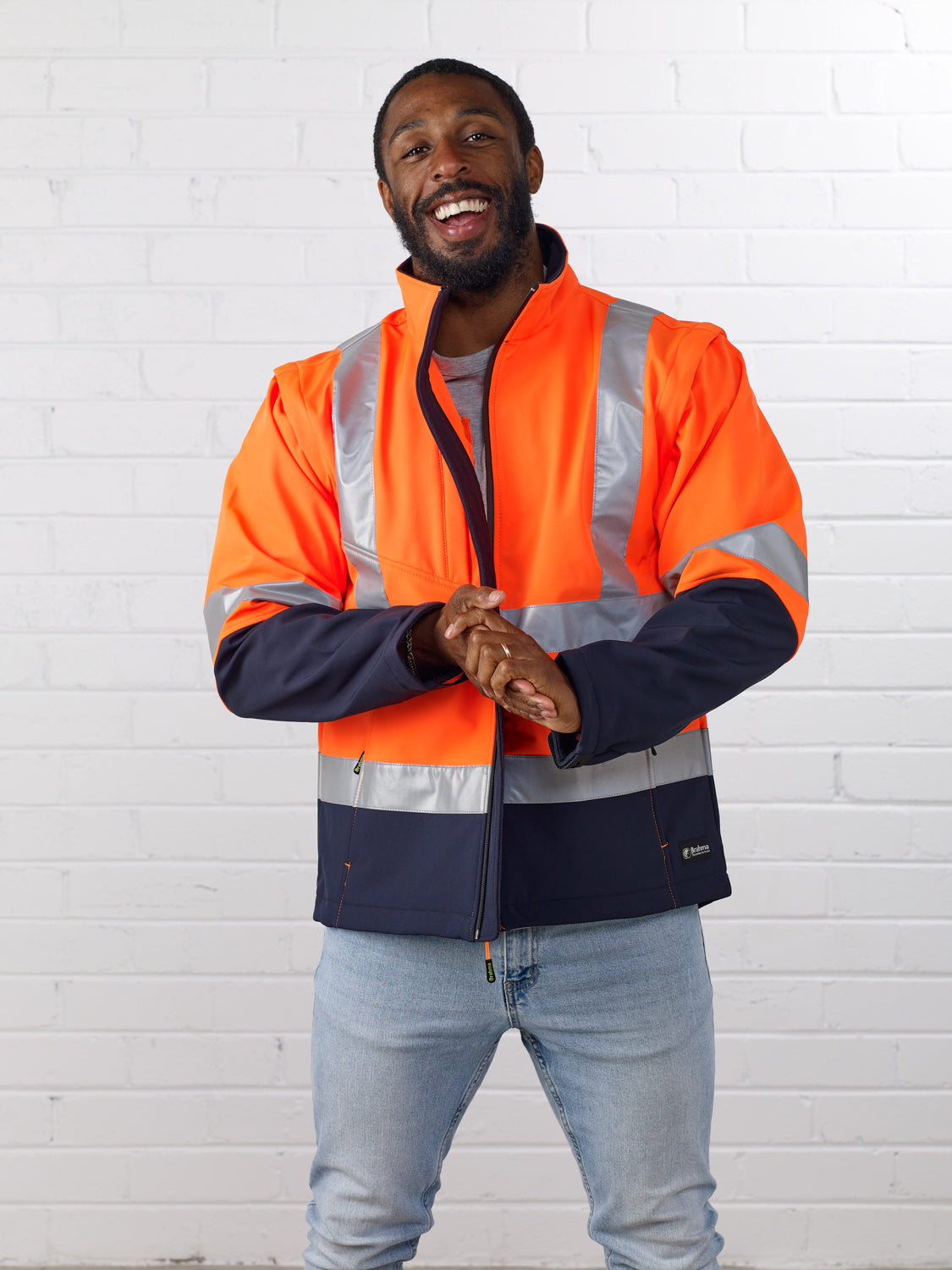 The Brahma Rover Jacket is a versatile 2-in-1 high visibility Day/Night soft shell jacket designed for tradies, construction workers, and road crews. Featuring zip-off sleeves, this jacket easily transforms into a compliant hi-vis safety vest when temperatures rise - giving you year-round functionality and comfort. Made from durable, water-resistant fabric and equipped with AS/NZS Approved reflective tape, the Rover Jacket ensures you're visible and protected in all conditions, while meeting AS/NZS 4602.1:2011 and AS/NZS 1906.4:2010 safety standards.