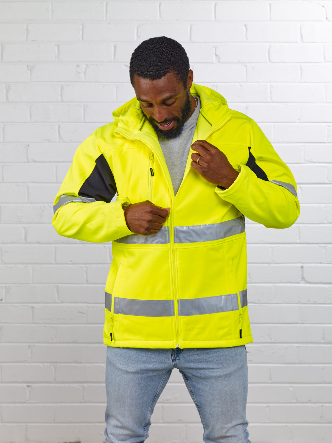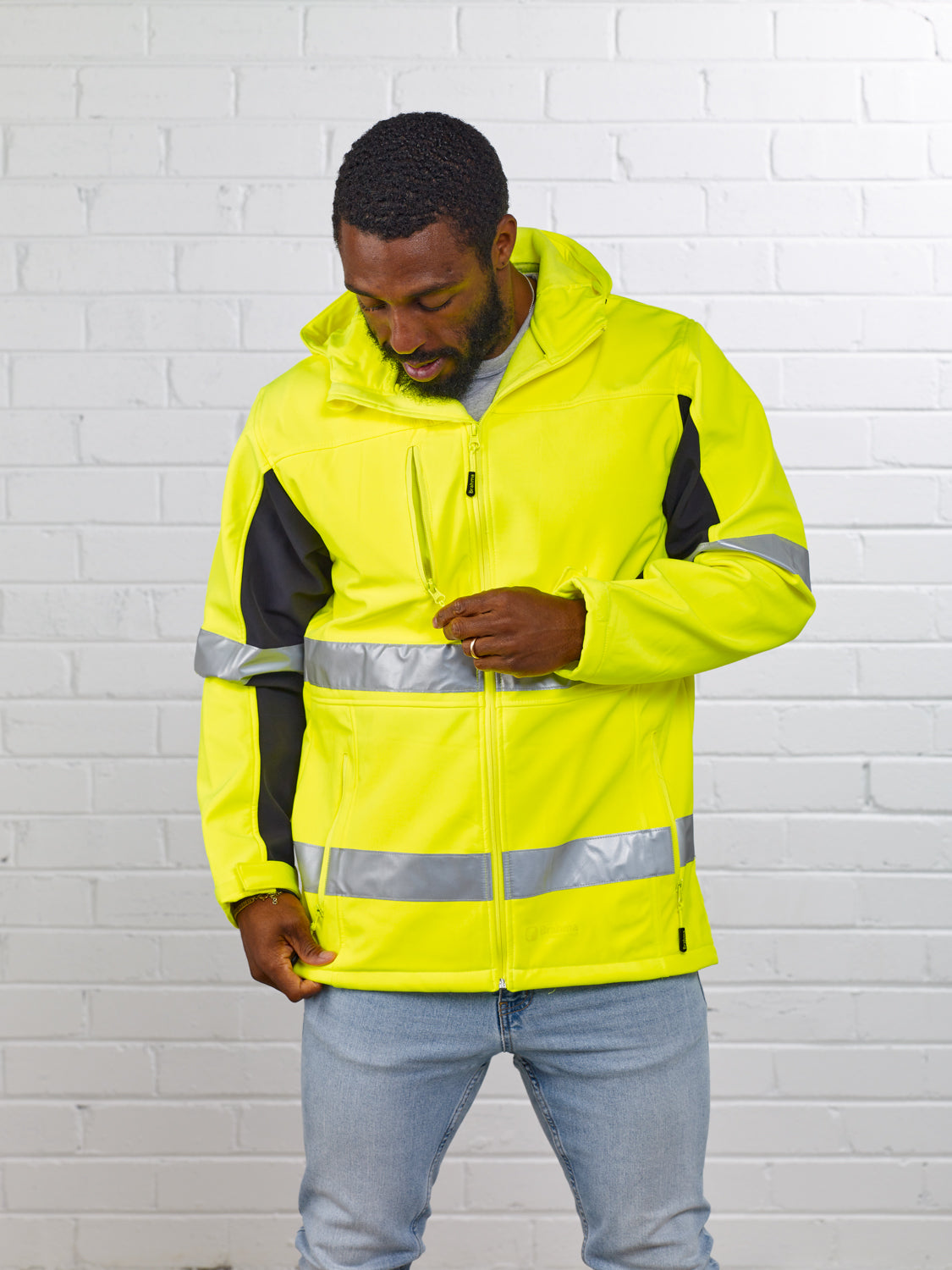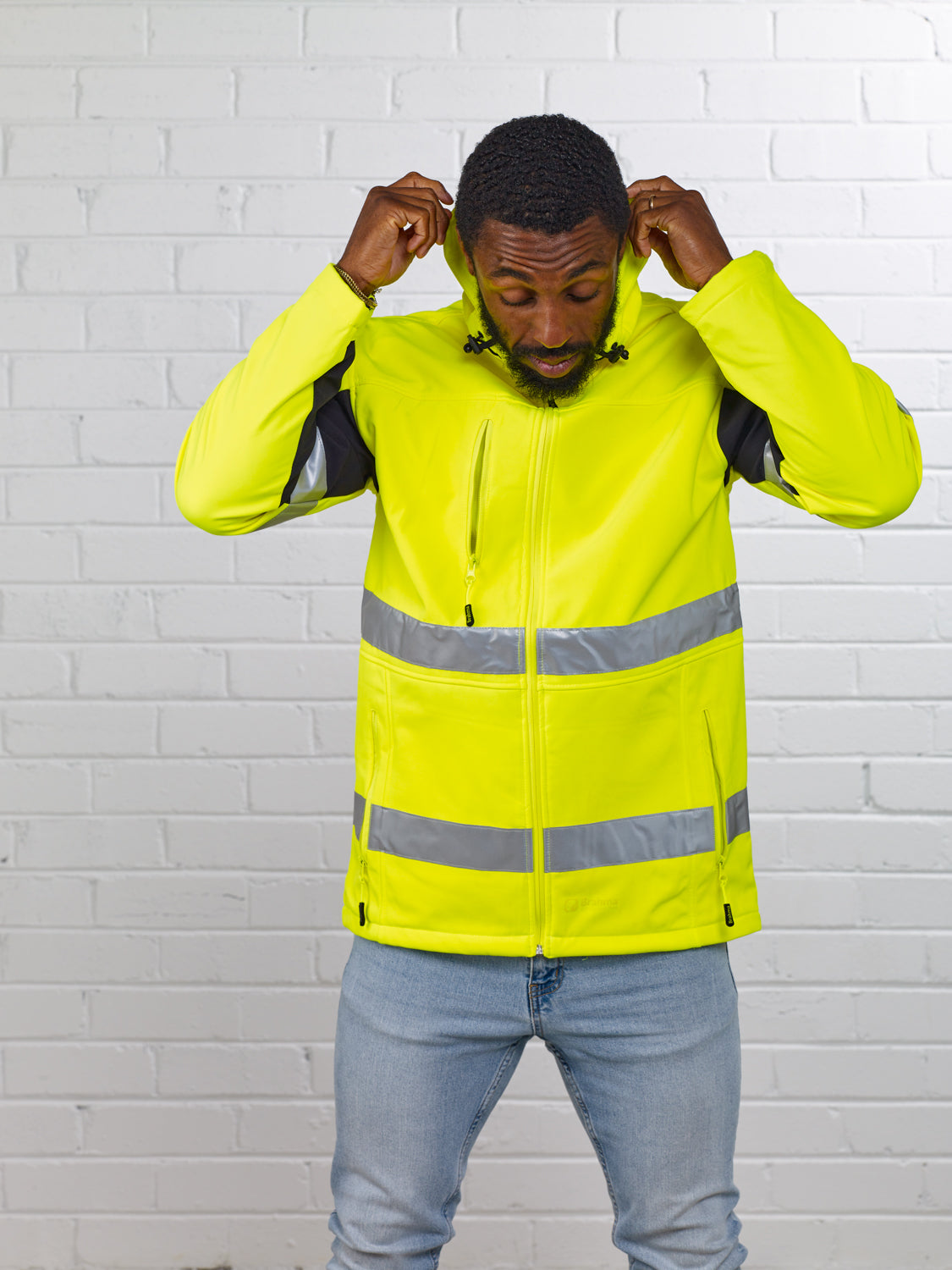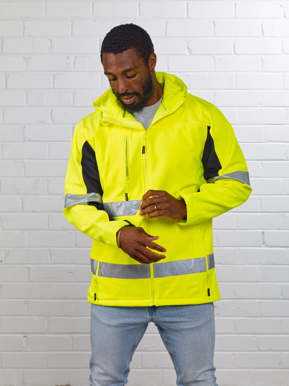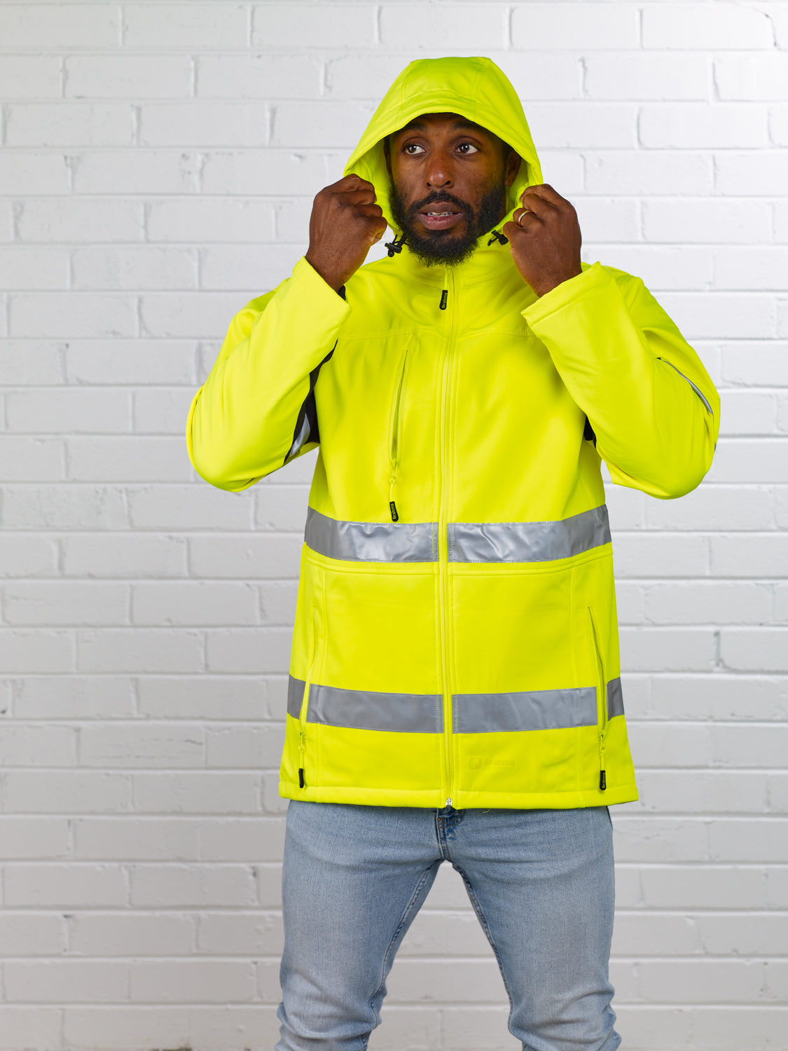Brahma Soft Shell High Visibility Day/Night Water-Resistant Jacket with Integrated Hood